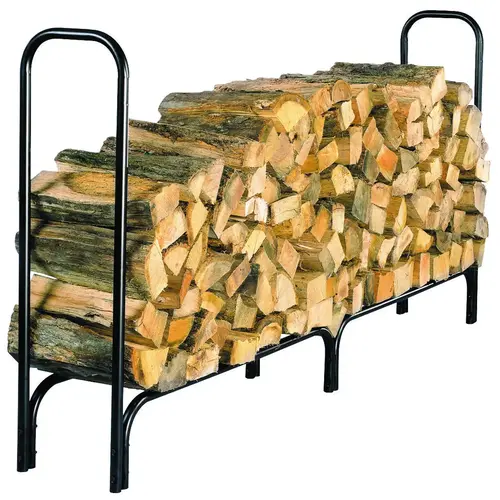 This SHELTER Brand tubular steel firewood storage log rack by HY-C company looks great in any setting. Measures 96 in length and holds a full face cord of firewood. The rack will neatly stack your firewood providing an open-air design for excellent ventilation for year round seasoning while protecting it from dampness, rot, termites, insects and nesting wildlife. Built with heavy-duty steel construction and a weatherproof black powder coat finish that resists chipping and corrosion.