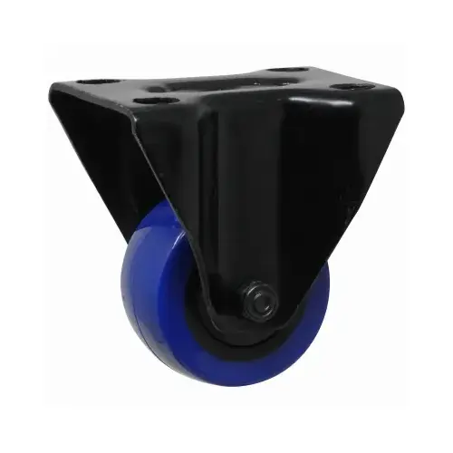 Shepherd Hardware Rigid Caster, 135 lb Weight, Wheel Diameter: 2 in, Wheel Material: TPU, Plate Dimensions: 2 x 2-3/4 in, Housing Material: Polypropylene, Powder-Coated, Black/Blue, Plate Mounting, Dimensions: 2-3/4 in L x 2 in W x 2-3/4 in H