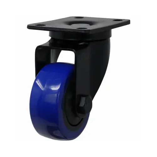 Shepherd Hardware Swivel Caster, 225 lb Weight, Wheel Diameter: 3 in, Wheel Material: TPU, Bearing Type: Ball, Plate Dimensions: 2-5/8 x 3-3/4 in, Housing Material: Polypropylene, Powder-Coated, Black/Blue, Plate Mounting, Dimensions: 4-1/2 in L x 2-3/4 in W x 4 in H