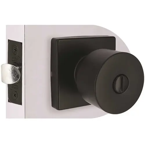 Boasting a crisp, sleek appearance, this Matte Black Bed and Bath Privacy Door Knob gives your interior doors an affordable upgrade. This lockable knob set easily mounts to doors 1-3/8 in. to 1-3/4 in. thick with the included hardware, perfect for bedroom or bathroom doors for desired privacy. It features an Easy Fit latch with interchangeable faceplates for drive-in or traditional installations. This sturdy, stylish door knob nicely coordinates with other fixtures in your home for a cohesive look.