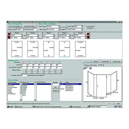 Safety features abound in this program. All shower enclosures must be a CRL-Approved application. If an unsafe application is generated, you will not be allowed to save the glass sizes.