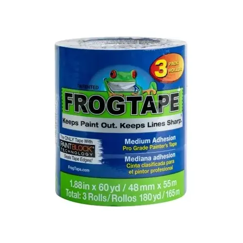 FrogTape pro grade painter's tape combines the sharp paint lines of PaintBlock technology with the value of a traditional blue painter's tape into an exclusive contractor multi-pack. FrogTape pro grade is treated with paintblock technology, which forms a micro-barrier to seal the edges of the tape. This prevents paint bleed and delivers the sharp paint line performance you expect from the FrogTape brand. Featuring a premium adhesive that is recommended for cured painted walls and trim, glass and metal, this blue painter's tape removes cleanly from most surfaces for 14 days. Available only in contractor multi-pack.