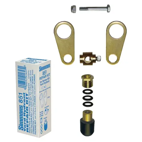 Simmons Yard Hydrant Repair Kit, Brass/Stainless Steel, Suitable for: 900 Series Yard Hydrant, Includes: (2) Brass Lines, (2) O-Rings, Brass Connector, Brass Packing Nut, Plunger, Stainless Steel Lot Nut, Fulcrum Bolt, Square Head Set Screw