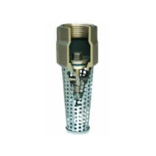 Silicon bronze valve body and poppet assembly. Furnished with buna-n O-ring, stainless steel spring, and stainless steel locknut. Foot valves have a working pressure of 400 P.S.I. Female threads. Code approved in California.