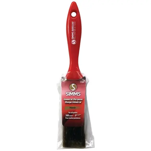 Simms Paint Brush, Brush Type: Flat, 2-1/4 in L Bristle, Polyester Bristle, Plastic Handle, 1-1/4 in W, 7/16 in Thick