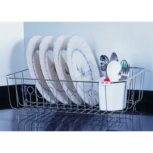 Dish Drainer with Cutlery Basket, 20 lb Capacity, 18 in L, 13-1/2 in W, 5-1/2 in H, Steel Silver