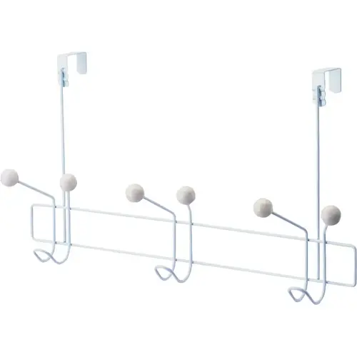 Door Garment Hook, 6 lb, 3-Hook, Steel, Powder Coated, Hanging Mounting White