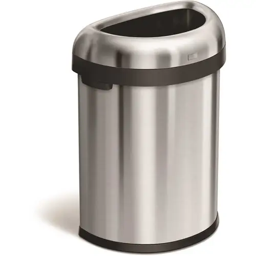 Simplehuman 21 Gallon Brushed Stainless Steel Semi-round Open-top Trash Can Open Top Design. Great For High Traffic Areas, The Lid Has An Open Design So It's Quick And Easy To Access. Space Efficient Semi-Round Shape Is Great For High-Traffic Areas. Great For Commercial Spaces: Extra-Large Capacity And An Open Lid Make This An Ideal Choice For Hotel Lobbies, Restaurants, Or Banquet Rooms. Lift-Off Lid: Lid Lifts Off Easily For A Quick Bag Change. Side Handles: Just Grab The Side Handles To Move The Can. Non-Skid Base Has Rubber Pads That Are Gentle On Floors And Keep The Can Steady. Simplehuman Code U Liners Are Designed To Fit This Can Perfectly So They Don't Slip, And They Stay Completely Hidden. Extra-Thick Plastic And Double-Seam Construction Prevent Rips And Tears. Ada-Compliant Mfg #CW1473