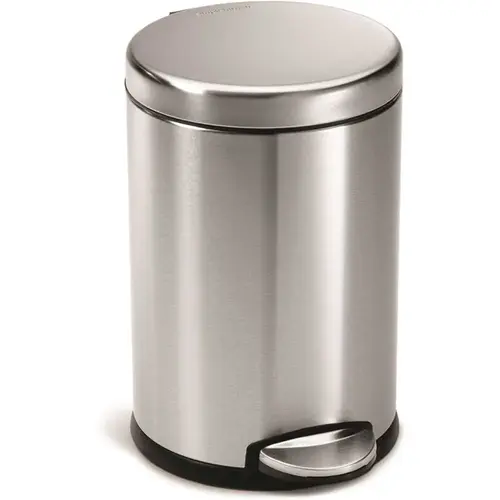 Simplehuman 1.2 Gallon Brushed Stainless Steel Round Step-on Trash Can The Strong Steel Pedal Is Engineered To Last Over 150,000 Steps, That's More Than 20 Steps A Day For 20 Years. Simplehuman Patented Lid Shox Technology Controls The Motion Of The Lid For A Slow, Silent Close Fits Well In Bathrooms, Under Desks, Counters, Or Wherever Space Is Limited. Non-Skid Base Has Rubber Pads That Are Gentle On Floors And Keep The Can Steady Mfg #CW1852