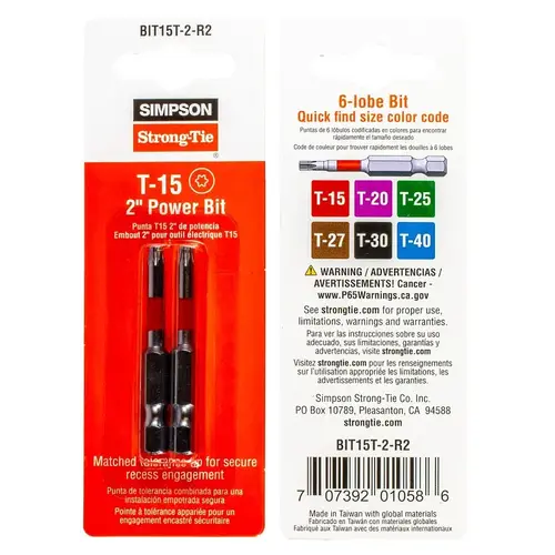 Simpson Strong-Tie driver bits are now color-coded to make size and type selection easier. Available in six-lobe, square and hex drive, these new driver bits have color bands that make choosing the correct size for your fasteners a breeze. Our industrial-grade driver bits are specially designed for a secure fit with Simpson Strong-Tie fasteners and will outperform sub-standard bits commonly prone to cam-out and stripping. Studies have shown that magnetized hex driver bits tend to collect metal debris inside the hex bit recess. This metal debris can cause poorly fitted or seated hex head screws within the driver bit and can cause installation or screw driving issues. Simpson Strong-Tie hex driver bits contain a non-magnetized retainer ring that helps secure the screw head in the hex bit recess, allowing for a more secure drive.