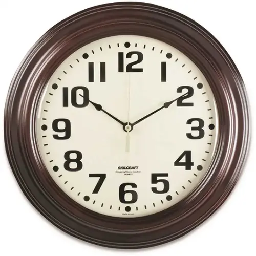Skilcraft Mahogany Wall Clock, 16" Overall Diameter, Mahogany Case, 1 Aa