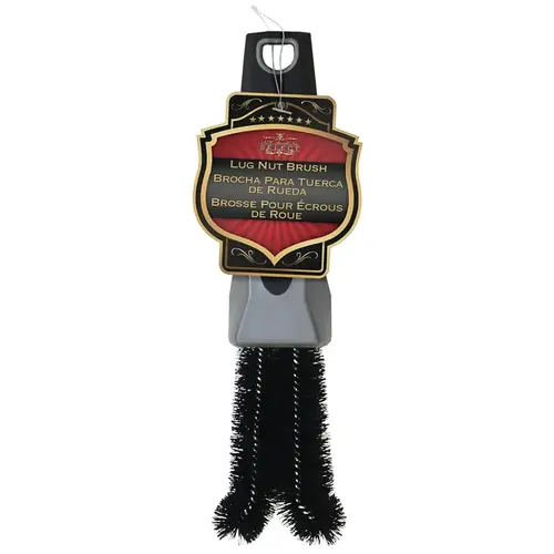 Designed to reach around any size lug nut. The handle features a soft thermal rubber grip to prevent slippage when wet. The brush has three separate wire loops loaded with flexible bristles to completely clean any dirt and grime caught around the lug nuts perimeter.