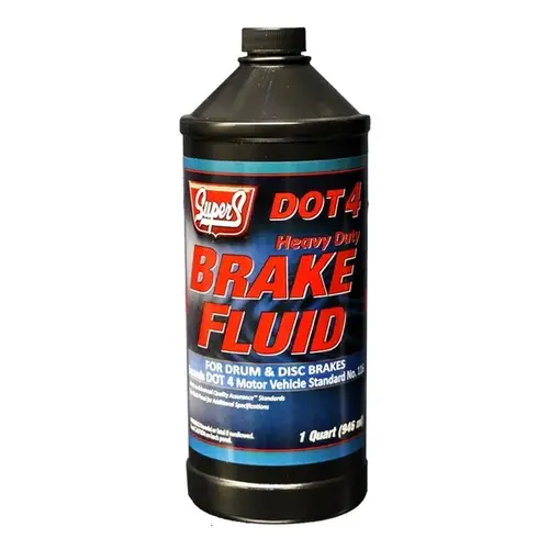 Super S DOT 4 Brake Fluid surpasses specifications SAE J1704 and fully complies with Federal Motor Vehicle Safety Standard No. 116. Super S Heavy Duty DOT 4 Brake Fluid is ideal for all types of automotive braking systems, disc or drum brakes. Operates efficiently under all weather conditions. 12 - 1 quart bottles