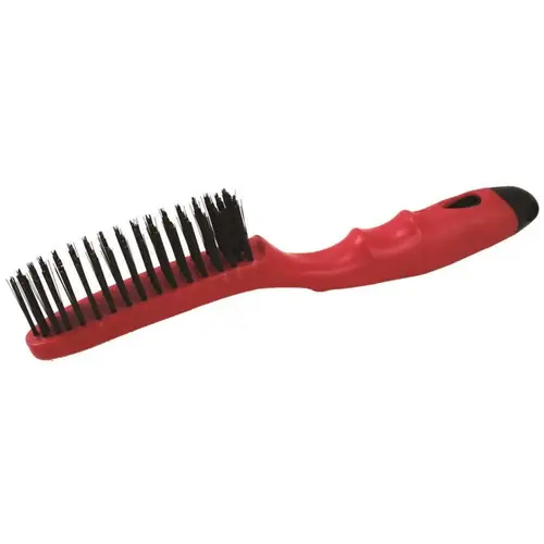 The 10 in. Steel Shoe Handle has Carbon Steel Wire Brush, 4x16 row and is ideal for removing rust and corrosion. The Ergonomic soft grip handle is made for comfort. Item is Safe to use with paint removers.