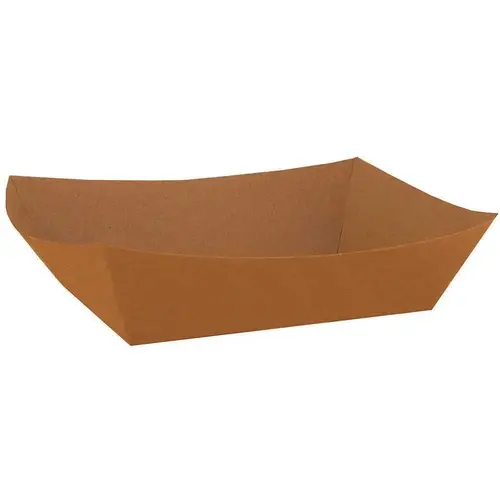 #25 Eco Food Tray, holds up to 4oz (1/4-lb) of hot or cold foods. Rectangular, single-use trays are made from premium kraft paperboard. Ideal for serving condiments or small sides.