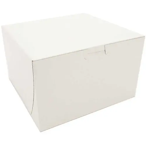 White Non-Window Bakery boxes are made of clay-coated kraft paperboard, which is white on the outside and brown on the inside. Each one piece box has an attached tuck-in lid, and can be used to hold and carry a variety baked goods. The lock corners facilitate assembly and enable the box to be folded flat for storage or transport.