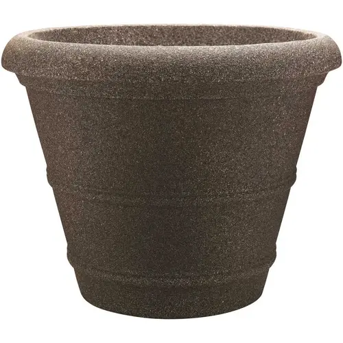 The Veranda planter has a modern style with a clean and simple look. A traditional design that will look great with any decor, its texture gives it an aged stone appearance. The poly-resin construction of this planter series provides a sturdy product that is light weight and UV protected.