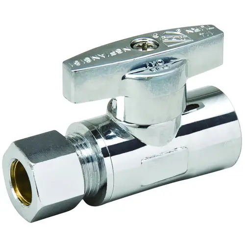Supply Line Stop Valve, 1/2 x 3/8 in Connection, Sweat x Compression, 125 psi Pressure, Brass Body Chrome