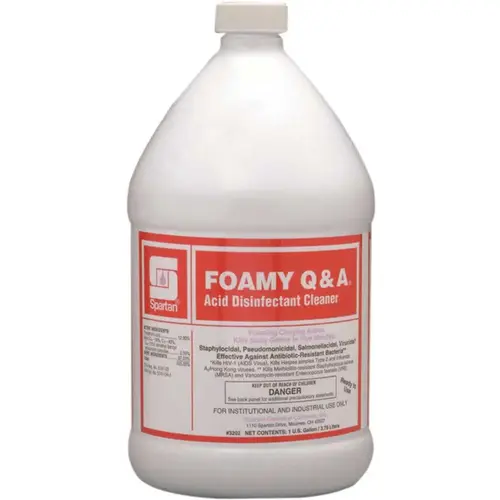 Foamy Q and A is a ready-to-use, acid-based formula with special foaming action for fast and efficient maintenance of shower rooms, restrooms, locker rooms and other areas with similar surfaces to be cleaned. Foamy Q and A can be used on a wide range of acid-resistant surfaces. These surfaces include ceramic tile walls, toilet bowls, urinals, chrome, drinking fountains and other stainless steel surfaces.