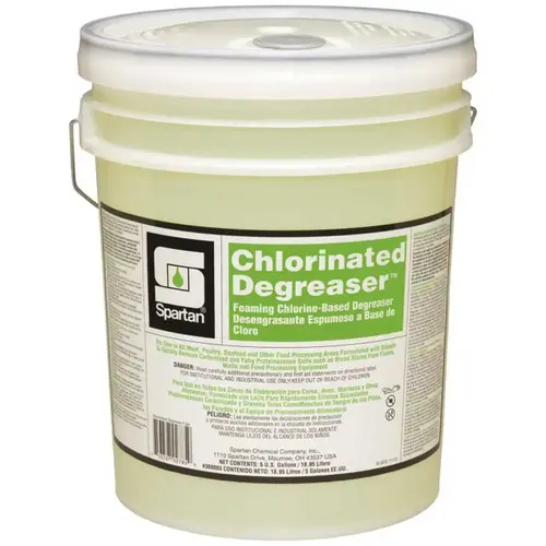 Heavy-duty concentrated liquid formulated with bleach to quickly remove carbonized soils such as blood stains from floors, walls and food processing equipment. The bleach cleaning action of Chlorinated Degreaser is high foaming and great for fast grease release. Safe to use on aluminum, galvanized steel and stainless steel and works well in hot or cold, hard or soft water.