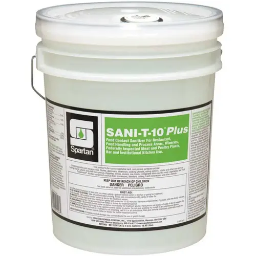 Sani-T-10 Plus is a 4th generation quat-based, food contact sanitizer for use in food handling and process areas. This includes federally inspected meat and poultry plants, fruit and vegetable processors, wineries, restaurants, bars and institutional kitchens. Ideal to sanitize filling equipment, food processing equipment, meat and poultry or fruit and vegetable conveyors dishes, glasses, cooking utensils, and eating utensils.