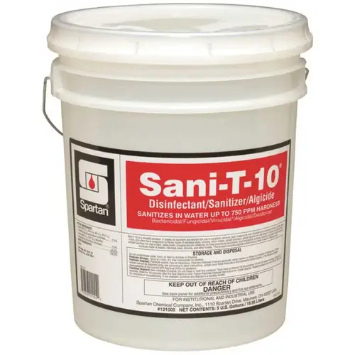 Sani-T-10 is a versatile product that makes an excellent disinfectant or sanitizer. Destroying both bacteria and the odor causing chemicals they produce, Sani-T-10 is ideal for use in a variety of areas including schools, food processing plants, restaurants, bars and institutions. Sani-T-10's algicidal activity makes it a great solution for treating swimming pools and spas.