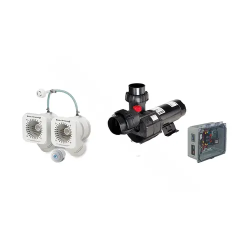 Flush Mounted Jet Housing; Square Anti-Entrapment Cover (8.25" x 8.25") Undetectable Pump Suction; Adjustable Water Flow Jet Nozzle; Air Regulator; Control Box with GFCI Pneumatic Button and Tubing; Speck 4 HP or 3.5 HP Self-Priming Plastic Pump Single P