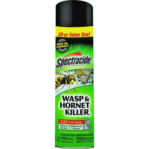 Spectracide wasp and hornet killer (aerosol) eliminates wasp and hornet nests by killing insects on contact. It lets you spray nests with a 27 ft jet spray. Formulated for outdoor use against stinging wasps and hornets.