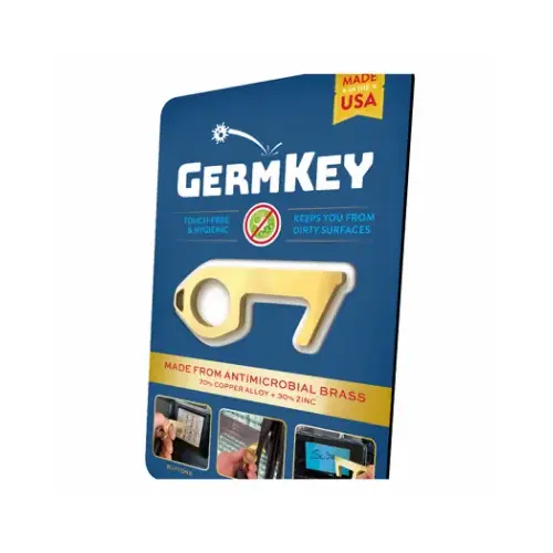 GermKey No Touch Tool. Manufactured from C260 brass alloy, GermKey Brass No Touch Hand Tool helps you avoid contact with dirty, public surfaces from door handles, to ATM buttons to keypads and touch screens. The simple design of this convenient hand tool makes it easy to press buttons, pull and open doors and it's even used as a Stylus on touchscreens and keypads.