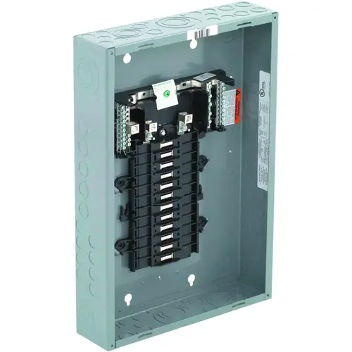 Square D Homeline Load Center, 120/240 V, 125 A, 1 ph, 24 Spaces, 1 Pole, 48 Circuits, Main Lug Breaker/Load Center, 65 kA Interrupt, 3-Wire Wiring Configuration, Bus Bar Material: Copper, Cover/Lid Type: Flush, Steel