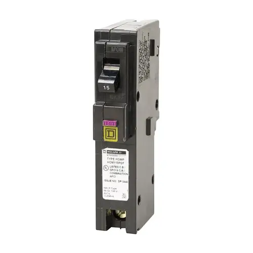 Square D HOM115PDFC Circuit Breaker, Dual Function, Mini, 15 A, 1 -Pole, 120 V, Plug Mounting