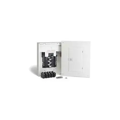 Square D Homeline Load Center, 120/240 V, 100 A, 1 ph, 8 Spaces, 1 Pole, 8 Circuits, 10 kA Interrupt, #8 to 1 AWG Cable, 3-Wire Wiring Configuration, Bus Bar Material: Aluminum, Cover/Lid Type: Surface, Surface Mounting, Steel