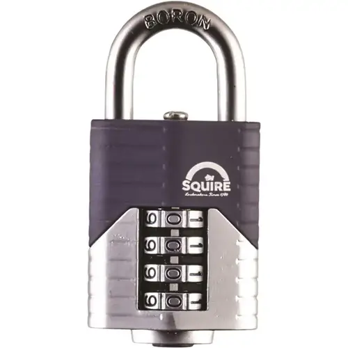 Squire Locks Combi-Bolt Weather Proof Combination Bolt Lock, 4 Wheel Boron Steel Shackle 5-wheel combination lock with 100,000 possible combinations 10mm diameter hardened alloy steel chain with a 1200mm length and protective blue sleeve 65mm armored steel body with protective cover 10 Year Warranty Mfg #SQ-COMBI4