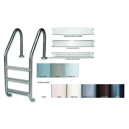 • This in-ground pool ladder contains three white plastic treads and two rubber bumpers that protect your pool wall