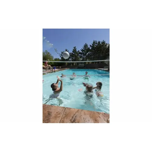 The Commercial Pool Volleyball Game comes in three sizes: 32’ net, 42’ net, or 52’ net. Each volleyball net has 3' ties on each side to help pull it tight. When you want to store the pool volleyball game, simply remove it from the anchors and replace with optional anchor caps for a flush look.