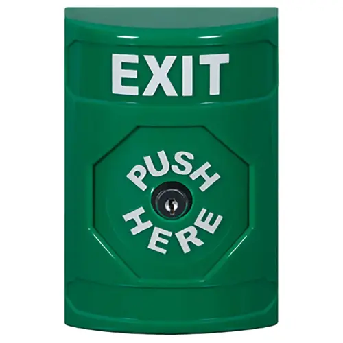Stopper Station, Green, No Cover, Key-to-Reset, "EMERGENCY EXIT"English