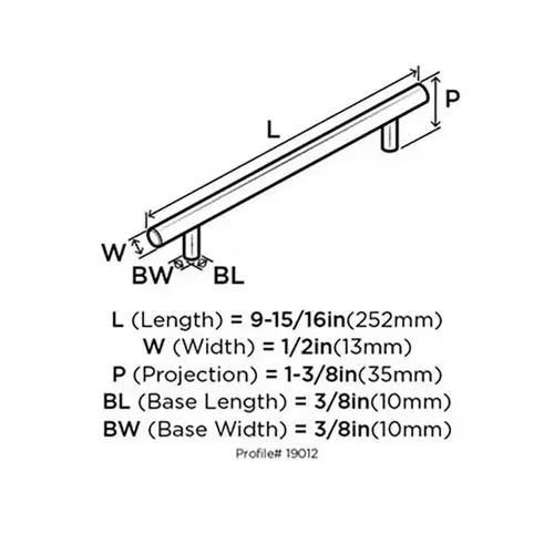 The Amerock BP19012SS Bar Pulls 7-9/16 in (192 mm) Center-to-Center Pull is finished in Stainless Steel.