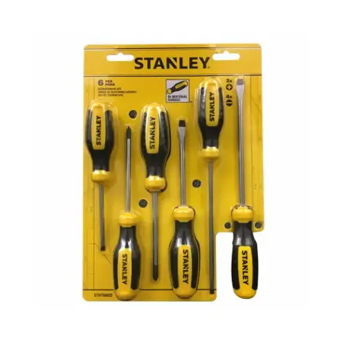 STANLEY Screwdriver Set, Number of Pieces: 6, Includes: (1) PH1 x 4 in, (1) PH2 x 4 in, (1) PH2 x 1-1/2 in, (1) 1/4 in x 1-1/2 in Slotted, (1) 3/16 in x 6 in Slotted, (1) 1/4 in x 6 in Slotted Screwdrivers