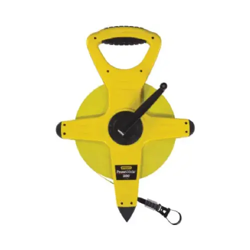STANLEY Measuring Tape, Graduation: 1/8 in, 300 ft L Blade, 1/2 in W Blade, Blade Color: Yellow, Fiberglass Blade, Case Type: Open, Case Color: Black/Yellow, Case Material: ABS, End Type: Hook, Rewind Type: Manual, Resists: Abrasion, Corrosion