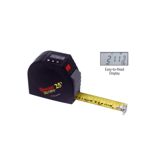 The easy to use CRL Digitape D1-25offers remarkable electronic measuring ability. An internal optical sensor 'reads' the black squares printed along the length of the blade similar to a bar code, constantly recalibrating itself every 1-1/2 inches (38.1 millimeters). Resets to zero at any blade position and automatically adds length of case to inside measurements. The result is consistent and reliable accuracy. Digitape has a two-in-one capability: use it as an electronic tape when you need to utilize any of its many electronic features, or use it as a manual tape, or both. This dual capability is sure to appeal to professionals and do-it-yourselfers. The Digitape also has a heavy duty one inch (25.4 millimeter) wide blade that extends to 25 feet (7,620 millimeters) in length.