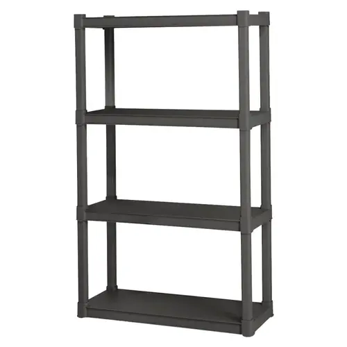 Shelving Unit, 34-1/2 in OAW, 14-3/8 in OAD, 57 in OAH, 4-Shelf, Plastic, Gray