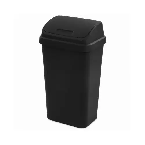 The 13.2 gal swingtop wastebasket has a dual-action swing-top feature that allows the lid to swing open when touched or, when lifted, stay open for easier disposal of oversized items. This wastebasket is ideal for use in the kitchen and accommodates a standard 13 gal trash liner.