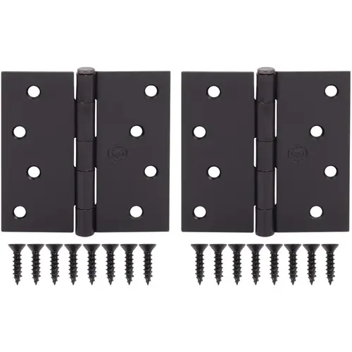 Stone Harbor Hardware 4" Door Hinges, Square Corner, Oil-Rubbed Bronze, 2-Pack