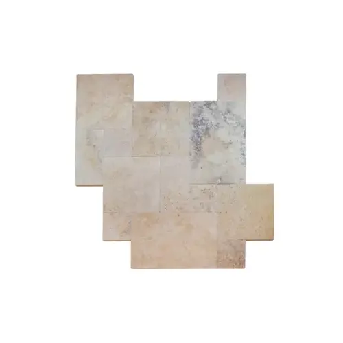 StoneHardscapes Country Classic Premium Ashlar Pattern (P9999-7-125-CC-TU) features 1.25" thick tumbled travertine pavers in a warm, beige-toned ashlar layout, ideal for pool decks and patios. The varied-size pattern creates a luxurious, rustic look, offering durable, frost-resistant performance with easy installation.1.25" thick tumbled travertine; multiple sizes in ashlar pattern; meets ASTM C615 standards.For pool decks, patios, walkways; suitable for wet/dry outdoor areas.Install with thin-set mortar or sand base; tools: trowel, compactor; use polymeric sand for joints.Premium ashlar layout enhances poolside elegance; durable stone resists wear, fading.