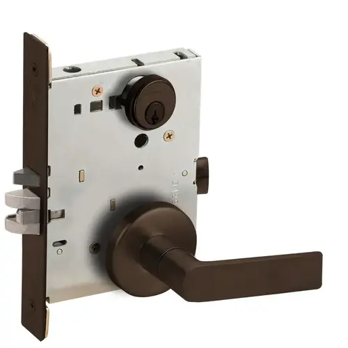 Grade 1 Storeroom Mortise Lock, Conventional Cylinder, S123 Keyway, 01 Lever, B Rose, Aged Bronze Finish, Field Reversible