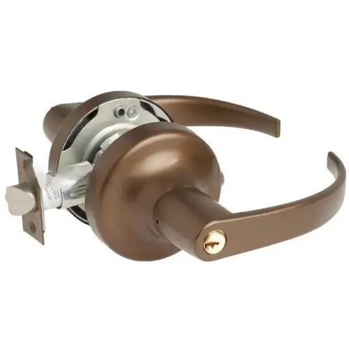 Outside knob/lever always locked/rigid. Latchbolt retracted by key in outside knob/lever or by rotating inside knob/lever. Inside knob/lever always free. Deadlocking latchbolt.