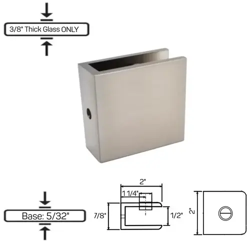 GCN-4 No Fabrication Fixed Panel Glass Clamp for 3/8" Thick Glass Only -Brushed Nickel