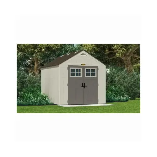 Offering a total storage capacity of 547 cu-ft the TREMONT storage shed makes essential organization simple. It features a reinforced floor to support tractors and other large items and can easily house all your tools, outdoor supplies and more. The multi-wall resin exterior is built for superior durability and measures 8 ft x 10 ft in size. Additional features include six skylights to bring in natural light, two corner shelves that can be used in eight different locations and metal, lockable handles to keep your valuables safe and secure.