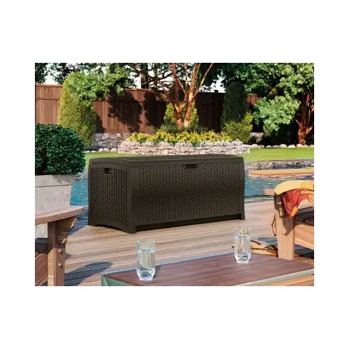 When it comes to stylish storage, look no further than this versatile medium deck box from Suncast. On the outside, the unit features a decorative wicker design that looks great in any outdoor environment. The high-quality resin construction is easy to maintain and can be used all year round. On the inside, it features a generous storage capacity of 73 gal, perfect for furniture cushions, pool supplies, gardening gear and more. The lid of the unit can even be padlocked for added security. No matter what your storage needs entail, this durable deck box will meet them with ease.