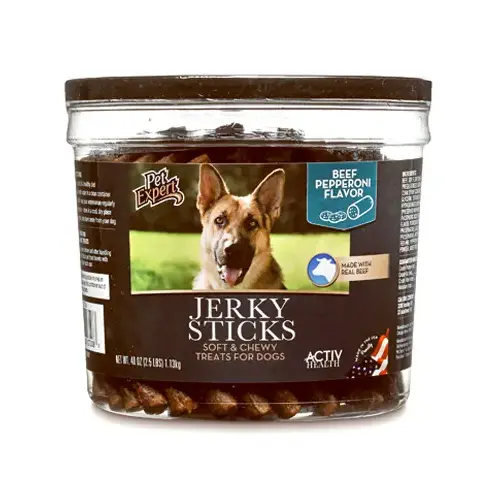 Pet Expert, 40 OZ Tub, Beef & Pepperoni Flavor Jerky Sticks Treats For Dogs, Made With Real Beef, No Artificial Preservatives, Flavors Or Colors.